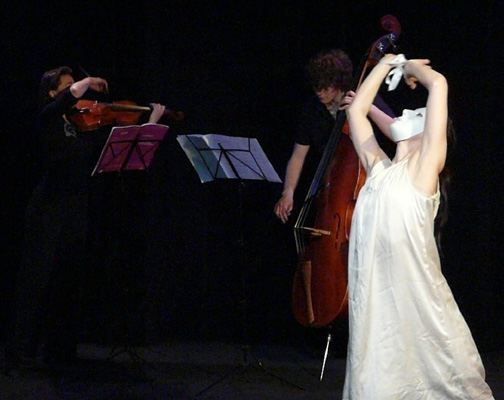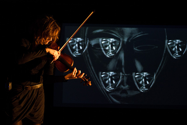 Création d'Eve Noire de Virginie Aster, dans le cadre du Festival International de Musique Cordes et Pics, en Savoie. Avec Virginie Robilliard, violoniste, et Thomas Guéï, percussionniste.